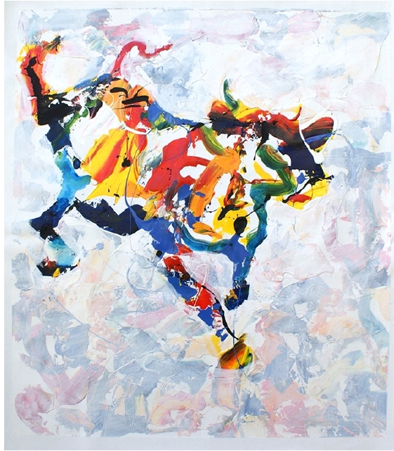 Ce serial painter– c’est ainsi qu’il se définit lui-même – s’attaque à de vastes toiles dans une urgence gestuelle dont les murs conservent la trace en delarges splashs polychromes. Ce fond expressionniste abstrait très coloré est ensuite recouvert d’un linceul blanc d’où émergent des silhouettes dégingandées et biscornues comme noyées dans un chaos de coulures, d’écritures, de biffures. Ce procédé crée un effet de transparence et de profondeur.