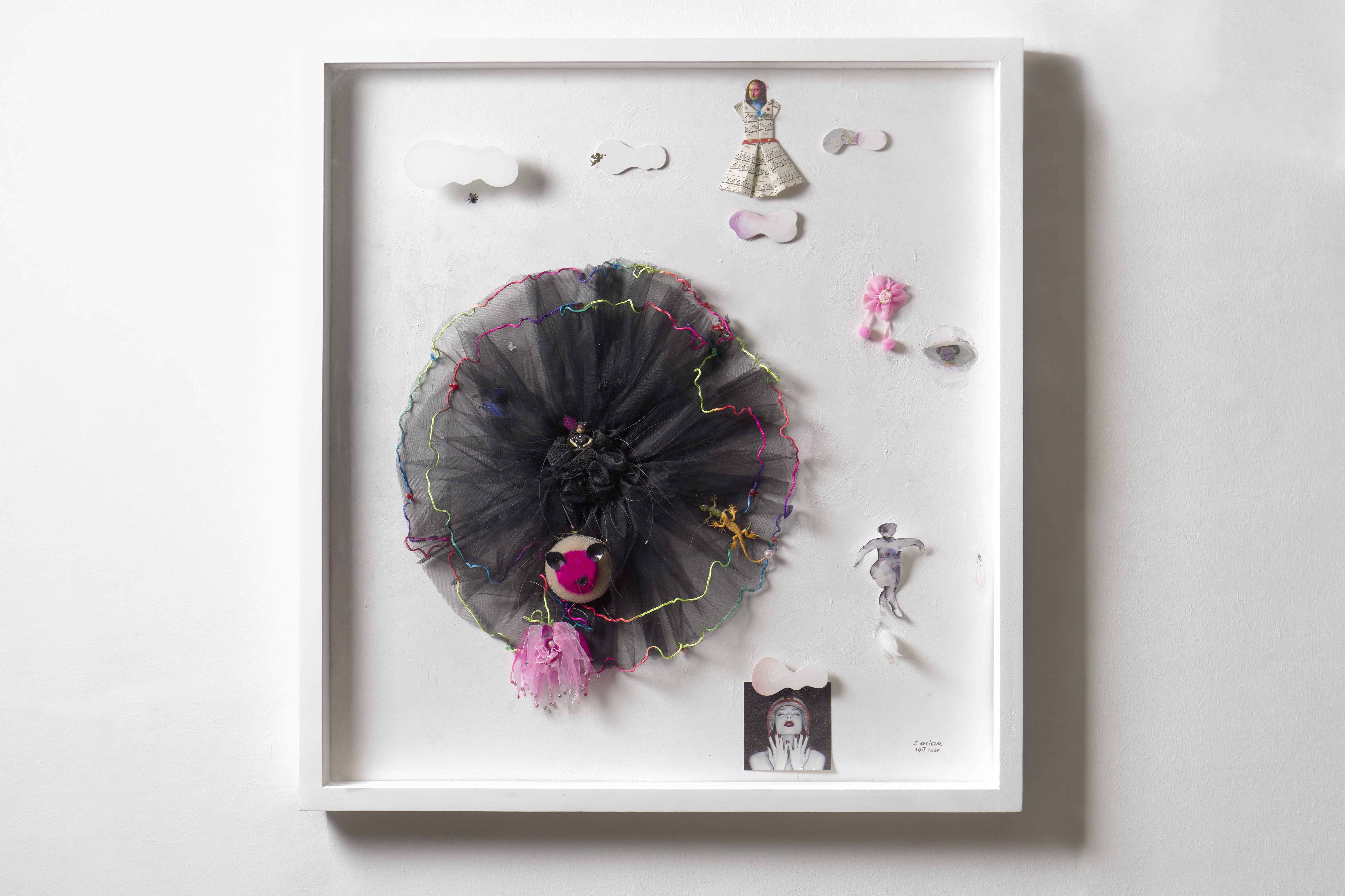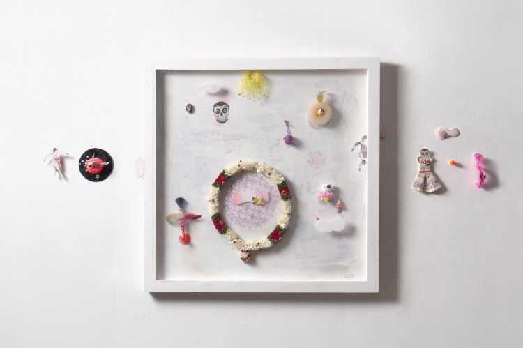 Il aborde également la problématique de l’objet. Comment détourner ces produits de la société de consommation sans grande valeur, jouets en plastiques, fleurs artificielles, colifichets féminins bon marché, les sortir de leur contexte, les reconfigurer, leur conférer une autre signification qui émergera de leurs relations au cœur de la cohérence plastique globale de l’œuvre où se croisent aussi des citations de tableaux entrés dans l’histoire de l’art, Dali, Renoir, Vinci et des touches picturales discrètes.