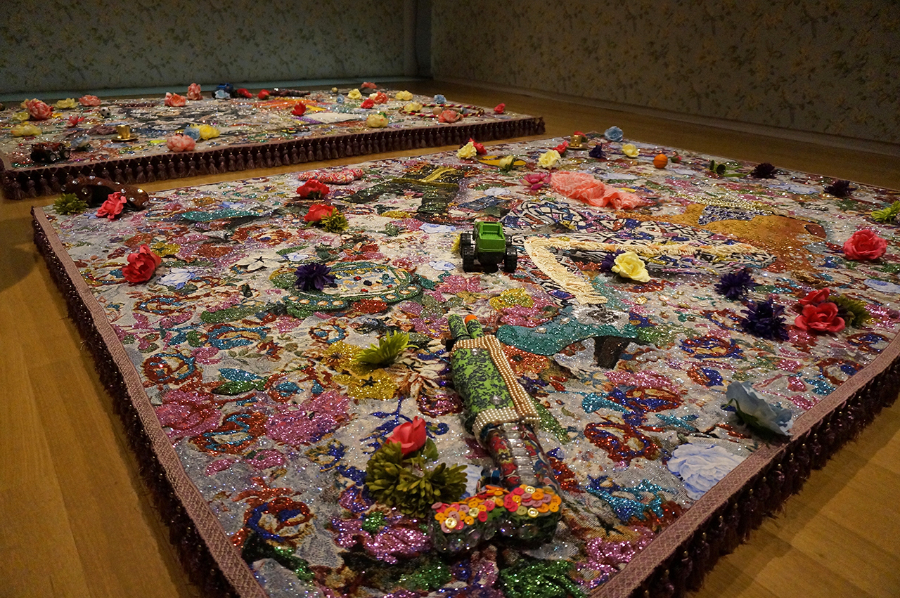 Ebony G. Patterson, Hew Locke, Pepon Osorio comme Ernest Breleur construisent leurs œuvres avec une multitude de petits objets kitsch, jouets en plastiques, fleurs artificielles, babioles, perles. Dans les installations de Pepon Osorio, ils ont une fonction décorative et déconcertante. Ils modifient la perception de l’objet en lui conférant une étrangeté déstabilisante.