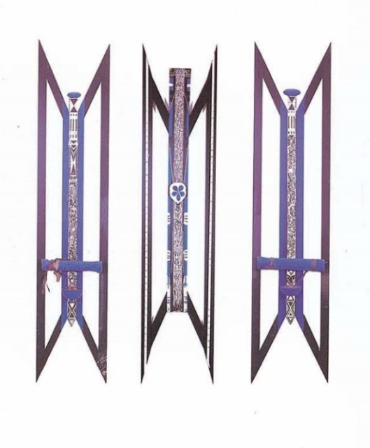 Christian Bertin (Martinique 1952) réduit également ses assemblages à deux ou trois objets contradictoires : poutre, coutelas et emplâtre ; timbales en métal cabossé, carré de moquette noire, zinc ; tambour de machines à laver, poutres vermoulues, aile de voiture et veste rigidifiée pour évoquer les tourments de la société martiniquaise.