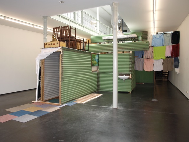 Les Environnements, variantes de l’installation au sein desquels le public peut déambuler au lieu de simplement tourner autour, sont rares. The west indian front room de Michaël McMillan (Saint – Vincent, 1962) et School at Pelgrim village de Marcel Pinas sont des reconstitutions d’intérieurs traditionnels, d’un salon typique des années soixante – dix d’émigrés caribéens à Londres pour le premier, d’une salle de classe de Pelgrimkondre au Surinam, pour le second. L’un et l’autre plaident en faveur la préservation d’une culture menacée.