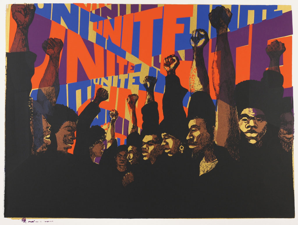 La plus importante et la plus aboutie des expositions londoniennes, celle de la Tate Modern a pour titre Soul of a Nation: Art in the Age of Black Power. Elle est aujourd’hui visible au Crystal Bridges Museum of American Art en Arkansas. Elle a retenu comme thème l’art noir américain des années 1963 à 1989. Plus de cent cinquante œuvres produites par une soixantaine d’artistes y sont rassemblées à partir d’un fondement théorique solide. Parmi elles, des oeuvres majeures comme Brilliantly Endowed (Self-Portrait), 1977 Barkley L. Hendricks que facebook ne manquerait pas de supprimer du fil d’actualité s’il y était inséré… Injustice Case (1970) de David Hammons où l’empreinte corporelle sérigraphiée d’un homme ligoté sur une chaise, tendue vers sa délivrance, figure, encadrée par un drapeau américain ou encore la très célèbre Liberation of Aunt Jemima (1972) de Betye Saar.