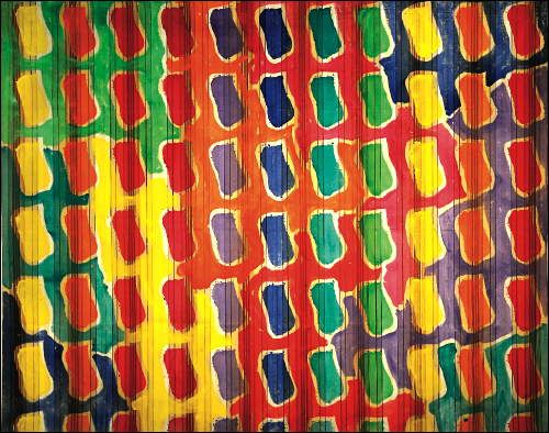A partir de ce geste simple, Viallat joue avec l’intensité et la somptuosité de la couleur. Il appose ses empreintes peintes en couleurs sur des supports eux-mêmes colorés, voire parsemés de motifs. «… ce qui compte, c’est la manière dont les couleurs jouent avec les couleurs qui sont en dessous, comment d’une manière intuitive et non voulue, non prévue, j’arrive à organiser une surface en densité, en intensité. » (C.Viallat).