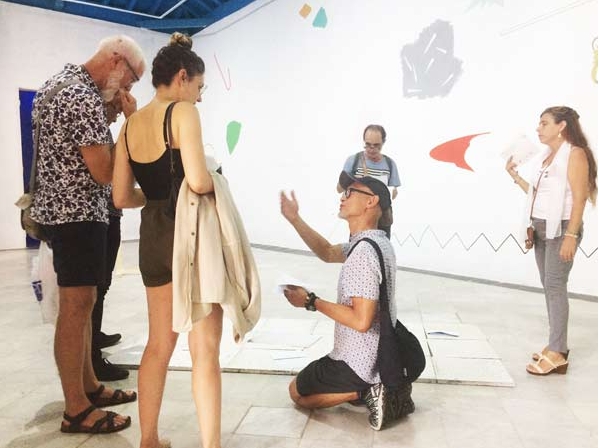 Ainsi, le visiteur est impliqué activement dans le Panorama, d’Igor Keltchewsky qui lui propose un jeu vidéo sympathique conçu par l’artiste dans lequel un musicien lutte avec la réalité quotidienne pour accomplir son rêve; et dans la pièce Rendez-vous, (2018), d’Éléonore Pano-Zavaroni, où le spectateur est invité à écrire une carte qui sera envoyée tout de suite en France pour être publiée dans un livre.