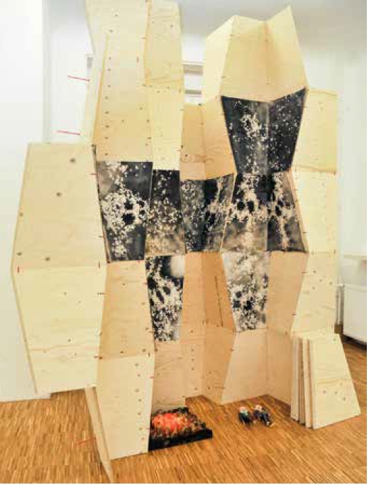 Bois, peinture, feu, Fixé-sur-verre – 173 x 140 x 148 cm