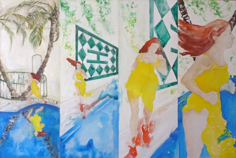 The Swimming pool series La ira de Saturno, aquarelle sur papier, deuxième séquence, 100 x156 cm. 2016.
