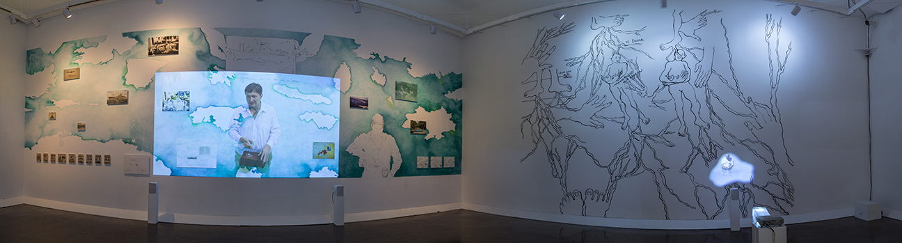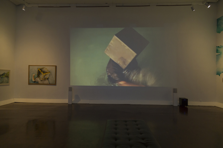 Registre photographique de la deuxième salle de mon exposition The Swimming pool series au Laboratorio de Arte Alameda., 2016. Vidéo La colère de Saturne.