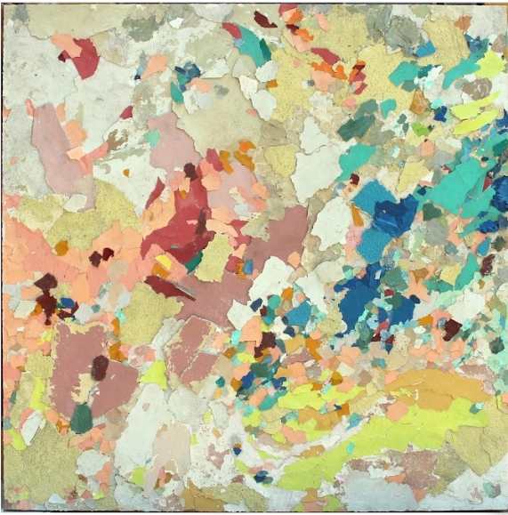C’est par assemblage, juxtaposition et superposition d’éléments collectés, des fragments de peinture qui se détachent des murs abîmés de La Havane que Diana Fonseca crée ses tableaux, entre récupération, accumulation, déconstruction de la planéité de la peinture.