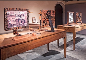 La privation d’internet stigmatisée dans l’installation d’Abel Barroso, Cyber-salon virtuel à la cubaine, exposée au Pavillon de Cuba, 57e Biennale de Venise 2017, après avoir été montrée à la Biennale de La Havane et dans le monde. C’est une reproduction en bois sculpté de plusieurs ordinateurs entièrement équipés de tous les accessoires, ornés de logos de marques, de moteurs de médias sociaux mondiaux et locaux pour la recherche en ligne. Les écrans qui changent manuellement les images montrent, entre autres, des photo-portraits de l’artiste dans différents environnements en essayant de se connecter au Wifi avec un smartphone en bois surdimensionné.