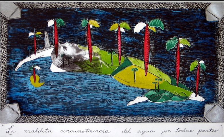 La forme même de l’île peut être comme chez Ramos, Bedia, Guttierez, Garcia, peinte, gravée ou dessinée ou recréée dans l’espace par Beuze ou Pédurand mais elle reste toujours porteuse d’une analyse critique. Ou bien elle est symboliquement évoquée, par exemple dans certaines œuvres de Kcho.