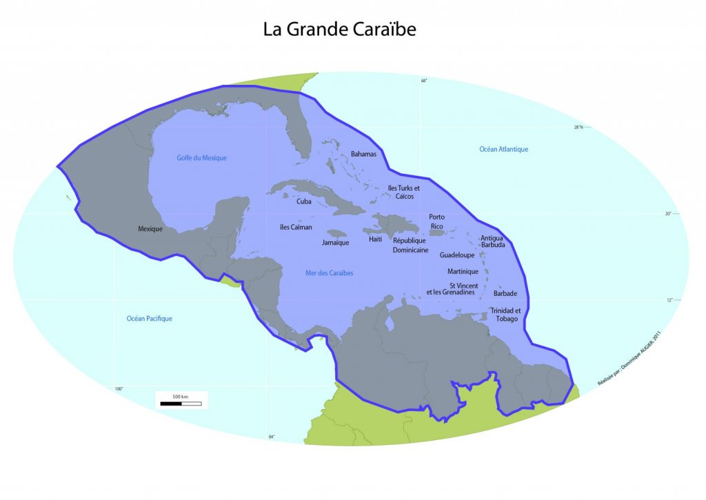 Il n’existe pas de définition unique et précise de la Caraïbe. Ce terme inventé au XXème siècle, en permanente réévaluation ou réinterprétation, désigne un espace à géométrie variable à forte hétérogénéité culturelle, linguistique, socio-économique et politique. C’est une réalité géo- historique qui s’étire sur près de 3500 kilomètres d’est en ouest et sur un peu plus de 2000 kilomètres du nord au sud. Elle représente 235 830 km2 de terre émergée, pour 42 millions d’habitants La perception et la délimitation des frontières de la Caraïbe fluctuent en fonction des points de vue. Leurs désignations ont été souvent modelées par des facteurs politiques.