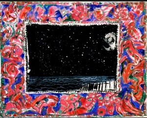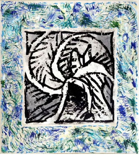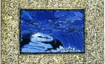 Dans La Mer Noire (1988-1990), c’est l’image centrale qui est en noir et blanc alors que les marges sont en couleurs. Les signes semblent alors avoir un rôle secondaire par rapport à l’image. D’après Alechinsky, la bordure serait un sas de décompression entre le monde du dehors et la peinture, une espèce de clôture, de frontière qui défend le monde pictural et le protège du monde extérieur