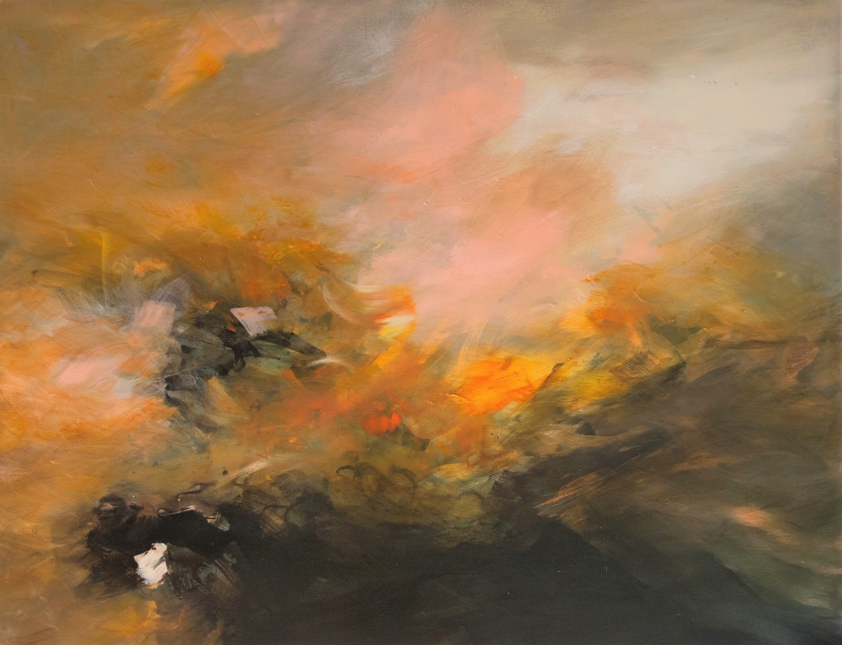 Les œuvres que Dora présente ici participent de cette recherche : retrouver non pas ce que la lumière éclaire, mais la lumière en soi. Ce ne sont donc pas vraiment des paysages, mais plutôt des espaces à la fois vides d’objets et remplis de lumière, en masses qui s’opposent et se superposent.