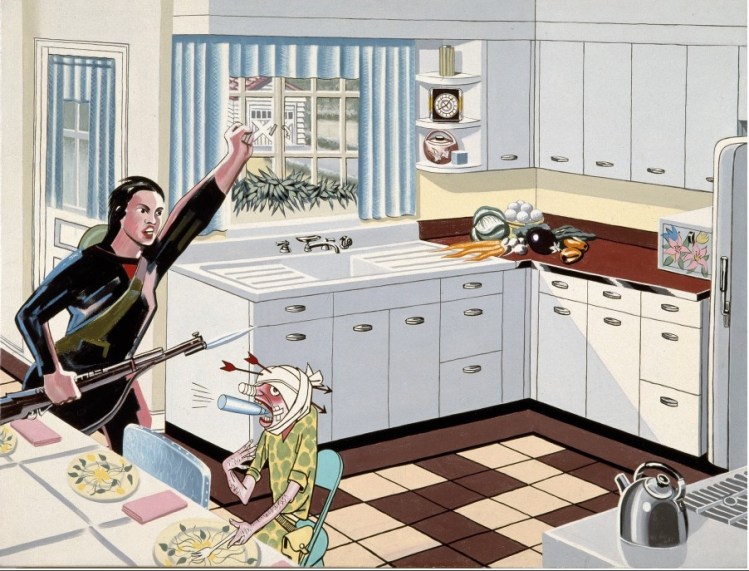 En réaction à l’Art informel qui dominait la scène artistique depuis l’après guerre, une peinture figurative apparaît en Europe et aux Etats – Unis pour devenir à son tour dominante entre 1960 et 1965. Ce terme Nouvelle figuration apparaît pour la première fois en 1961 à l’occasion d’une exposition organisée par le critique Jean- Louis Ferrier à laquelle participait entre autres, Alechinsky. Cela impliquait une rupture à la fois avec les figurations existantes et les abstractions dominantes. Le courant artistique de la Nouvelle figuration émerge nettement en 1965 avec deux expositions – évènements, Mythologies quotidiennes (1964) et Figuration narrative (1965) organisées par Gérald Gassiot Talabot, critique et théoricien du mouvement. Toute œuvre plastique qui se réfère à une représentation figurée dans la durée, par son écriture et sa composition, sans qu’il y ait toujours à proprement parler de ‘‘récit » est narrative. La Figuration Narrative de Gérald Gassiot Talabot, se superpose à la Nouvelle figuration mais l’élargit à tous les créateurs d’un récit visuel retrouvant une durée temporelle à travers des séquences, des assemblages. Le courant artistique qui s’est développé alors face à la double emprise de l’abstraction finissante et du pop naissant, très vite nommé Nouvelle figuration, a rassemblé des peintres intéressés à la fois par la forme et le sens. Pour Gérald Gassiot-Talabot « la Figuration narrative restreint le champ de la Nouvelle figuration pour retenir certains artistes à partir de critères formels et surtout politiques. ». L’ajout du mot critique, Figuration critique, permet de démarquer ce mouvement du Pop Art qui se contentait d’un constat neutre de la société de consommation. Donc la Figuration critique, mouvance issue de la Figuration narrative, est plus restreinte que la Nouvelle figuration et insiste sur la fonction politique de la peinture. Donc, on peut dire que Nouvelle figuration, Figuration narrative, Figuration critique se recoupent.