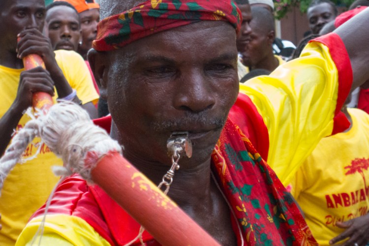 Dialogues entre les disciplines artistiques à travers des créations qui croisent le jazz caribéen et la musique arabo –andalouse avec l’Insula Trio de Maher Beauroy, harmonisant piano, percussions et oud, ce luth oriental à manche court. Entrecroisements aussi entre les arts visuels et chorégraphie contemporaine avec Yué # sorority conçu par la plasticienne Guy Gabon et les chorégraphes Myriam Soulanges et Anne Meyer ou encore entre les arts visuels et les arts de la rue avec Raranaval de Giscard Bouchotte, où un groupe de rara, Henry Tauliaut, Schneiderson René, Rachelle Généus déploieront leurs performances lors de cette version contemporaine et revisitée du Raraval. Les spectateurs sont invités à se joindre à la procession. Cette procession du nom du défilé officiel des raras à Port-au-Prince – réinterprète un rituel haïtien. Après la période du carnaval s’organise en Haïti le Raraval, un carnaval paysan sans doute lié aux anciens rites de récolte. C’est un évènement culturel rural. Les groupes de Rara produisent de la musique avec des tambours, des chachas, des banjos, des vaccines, des bambous, des joncs, des cornets, et un fouet de tâche. Les bandes sont dirigées par un Meneur aussi appelé Colonel qui pratique des mouvements rituels.