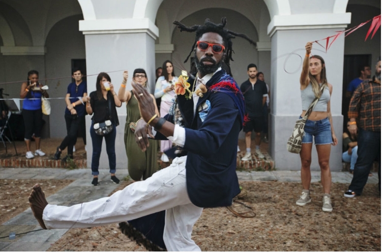Nyugen Smith performs “LEST WE FORGET” during the MECA art fair in Puerto Rico. Image courtesy MEC