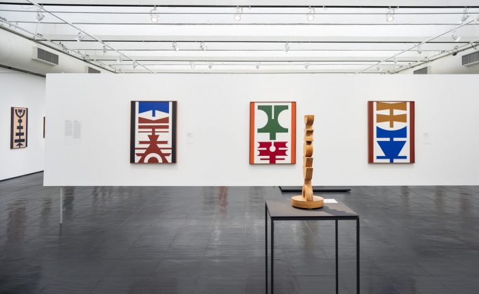 Toujours au MASP, Constructions afro-atlantiques réunissait 90 œuvres du peintre, sculpteur et graveur Rubem Valentim (1922-1991). Dès les années 1950, Rubem s’approprie le langage de l’abstraction géométrique pour construire des compositions complexes qui repensent et reconfigurent les symboles, emblèmes et références africaines, notamment à travers des dessins et des diagrammes qui représentent les orishas des religions afro-brésiliennes – comme la double hache de Xango, la flèche d’Oxossi et les tiges d’Ossaim. L’œuvre de Rubem Valentin, qui aurait mérité une plus large diffusion, a effectué l’une des opérations les plus radicales de l’histoire de l’art brésilien, soumettant le vocabulaire plastique d’origine européenne au vocabulaire afro-brésilien, dans une contribution vraiment unique et puissante, décolonisante et anthropophage.