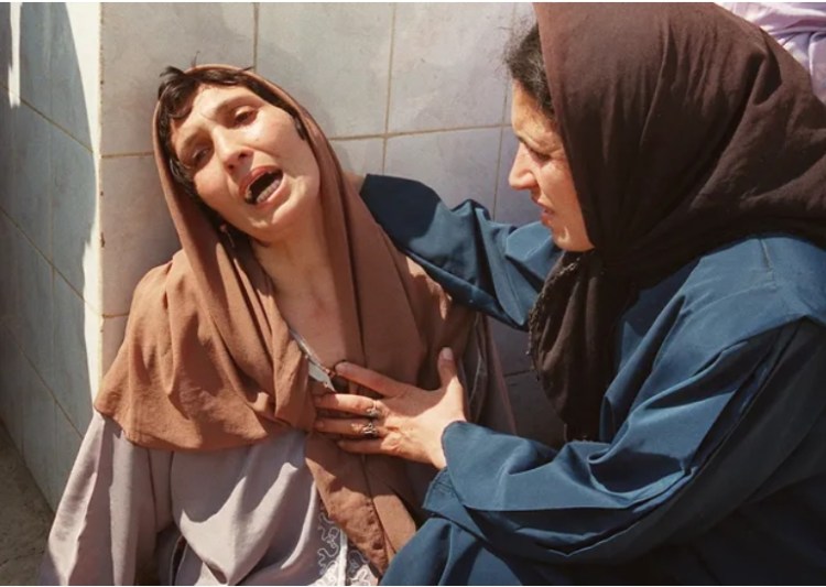 Journaliste de terrain, Hocine Zaourar travaille en Algérie pour l’AFP. Le lendemain du massacre de Bentalha, le 23 septembre 1997, il veut réaliser des clichés des victimes dans des hôpitaux. A l’entrée de l’hôpital de Zmirli, il photographie une femme effondrée en proie à une vive douleur. Il envoie une pellicule de plusieurs clichés à l’AFP. L’un d’entre eux est sélectionné et même recadré sans que l’auteur en soit informé. Sur le cliché initial un groupe d’homme apparaissait sur la gauche. Le lendemain, la photo, qui ne montre plus que deux femmes, est publiée dans une centaine de journaux avec comme légende, La Madone de Benthala. Le prix World press lui est attribué en 1998. Mais la presse algérienne pro – gouvernementale accuse le photographe de falsification de l’image. Une rumeur circulait, selon laquelle cette femme aurait perdu ses huit enfants, ce qui faisait d’elle le symbole de la mater dolorosa, de la piéta. En réalité elle n’a pas d’enfants mais vient d’apprendre la mort de son frère, sa belle sœur et sa nièce. Le photographe est menacé de mort et doit se cacher. Il y a à la fois une manipulation symbolique qui transforme cette femme en symbole universel de la douleur et une instrumentalisation politique. Hocine Azouar est accusé d’avoir mis en scène cette photographie mais il semble bien qu’une image, prise par un autre photographe, en même temps sous un autre angle, confirme qu’Hocine a bien capté ce cliché sur le vif.