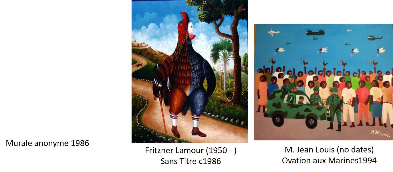 En avril 1971, François Duvalier meurt et est remplacé par son fils adolescent Jean-Claude. Je cite ce moment sans pour autant entrer dans la politique de cette succession. On notera seulement que dans la décennie qui a suivi, l’aide étrangère s’est renforcée significativement, et des changements notables se sont produits dans le mode de vie des élites et des classes moyennes, développant, entre autres, un marché local pour les arts orienté surtout vers le « moderne ». Les gouvernements intérimaires, les dirigeants élus et leur chute,à la suite de coups d’État ou des protestations publiques, ont ensuite provoqué des troubles qui ont affecté l’économie et divers aspects du monde de l’art en Haïti: les artistes de toutes tendances, les promoteurs, les marchands, les chercheurs, les critiques. Tout cela a également affecté les institutions dans leurs interactions, leurs initiatives, les formes et niveaux de participation à ce monde de l’art. Tous ces éléments,auxquels s’ajoute le tremblement de terre de 2010, ont contribué au développement de cette esthétique de rejet, de désillusion ou de catastrophe qui a émergé.