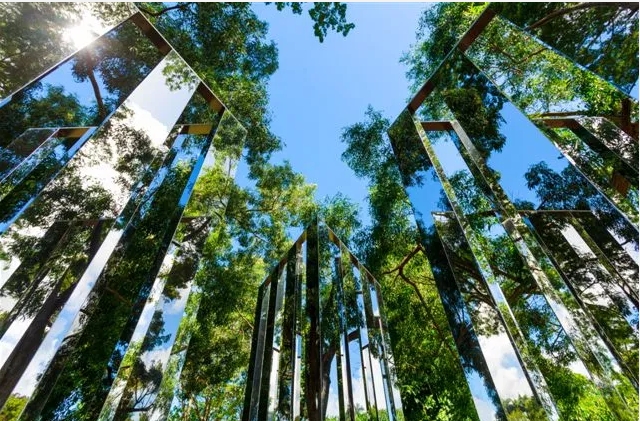 Jeppe Hein2-Dimensional Mirror LabyrinthAcier inoxydable poli et Alu-cobond220 x 350 x 350 cm2006 (installation 2015)© Fondation Clémen