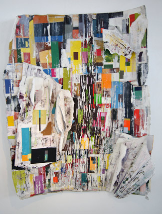 De ses gribouillis automatiques émergent de petits personnages de bandes dessinées ou de contes pour enfants qui viennent habiter ses œuvres. Elle croise un colleur d’affiches et commence une série qui évoque les œuvres des décollagistes.