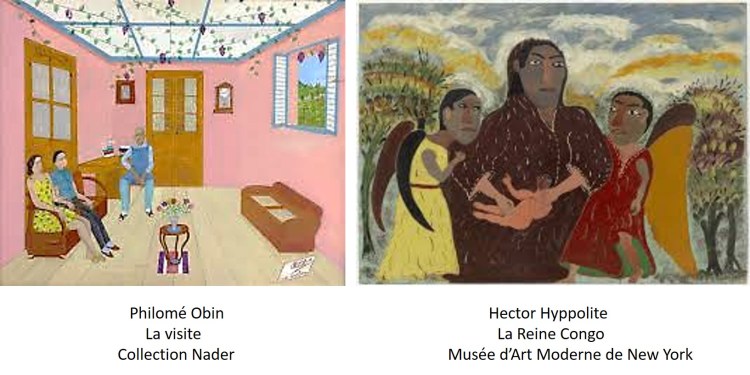 Parmi les œuvres des premiers artistes dits « primitifs/naïfs »arrivés au Centre d’Art à la même époque, on trouve, d’une part,certains qui peignent ce qu’ils voient et entendent dans leur quotidien. Les sujets sont donc haïtiens.Ils s’appliquent à la technique et comme Philomé Obin, certains ont recherché l’exactitude en allant même jusqu’à utiliser des instruments géométriques. On retrouve, d’autre part, des artistes qui vivent leur environnement et en même temps, ils lui échappent. Ils ont leur rêverie, leurs fantasmes et veulent réorganiser le monde à leur image. Ils sont indifférents à la technique, privilégiant la création. Ils affichent des libertés que leurs contemporains éduqués prennent difficilement. A titre d’exemple, on peut citer Hector Hyppolite qui, dans sa peinture,a exercé une liberté réelle, une liberté qui a été plus grande au niveau de son évasion du quotidien.