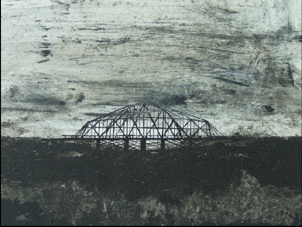 Pourquoi les ponts sans attache, en suspens, inachevés et esseulés de Philippe Thomarel nous fascinent – ils autant ? Au cœur de paysages désolés et tourmentés, comme désenchantés, ces structures anachroniques campent entre ciel et terre, dans un contraste ferme avec l’abstraction matiériste et imprécise des alentours.