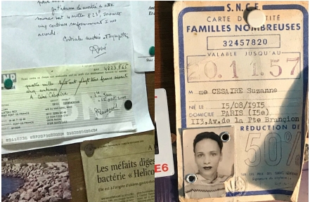 Comment ne pas être ému par le panneau qui fait face au bureau où le poète épinglait ses souvenirs : un poème de sa petite fille Delphine, des photos d’amis très chers comme Michel Leiris , une vieille prescription médicale de son ami de toujours, Pierre Aliker, la carte de transport « famille nombreuse » de sa femme Suzanne du temps où la famille vivait à Paris. Il y a aussi une photo du fromager de Saint – Pierre qui aurait résisté à l’éruption de 1902 et dont le tronc calciné aurait reverdi cinquante ans plus tard. Il y a encore un chèque de 4823, 65 francs, jamais encaissé. Cette somme correspond à sa part des droits d’auteur pour la revue Tropiques rééditée par Jean- Michel Place à la fin des années quatre – vingt dix.
