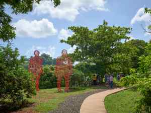 Entretiens dans le jardin des sculptures de la Fondation Clément, en premier plan Armatures d Hervé Beuze. photo@JB Barret, courtoisie du photographe