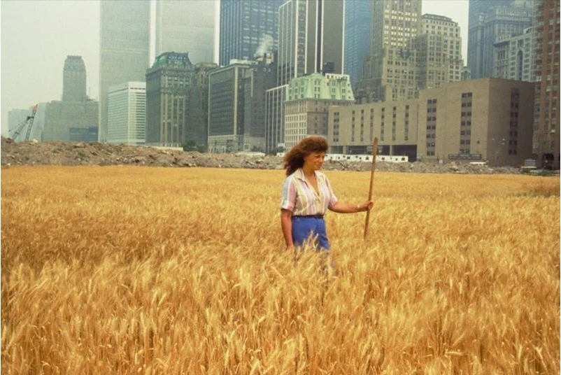 En 1982, Agnes Denes a planté et récolté deux hectares de blé à deux rues de Wall Street et du World Trade Center, face à la Statue de la Liberté.
