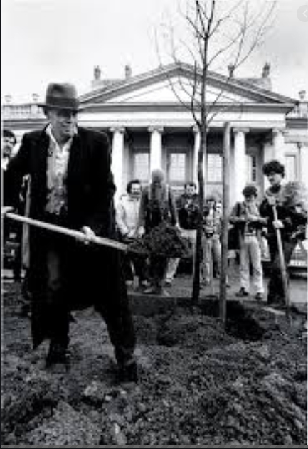 Pour la Documenta 7, à Kassel en 1982, Beuys commence la plantation de 7000 chênes, action qui se poursuit sur plusieurs années, sur toute la planète, même après la mort de l’artiste en 1986.