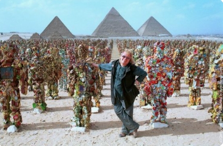 Il est l’un des premiers artistes à traiter le déséquilibre écologique du monde dans son travail et a donc été qualifié de « pionnier de l’éco-art ». Parmi ses œuvres les plus connues, citons l’œuvre itinérante Trash People exposée sur tous les continents. Ce sont des formes anthropomorphes fabriqués à partir de boîtes de conserve broyées, de déchets électroniques et d’autres déchets. Elles ont été exposées sur les principaux sites touristiques tels que la Place Rouge de Moscou (1999), la Grande Muraille de Chine (2001) et les Pyramides de Gizeh (2002).