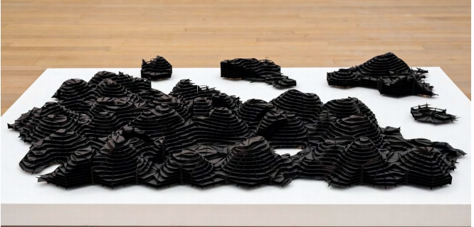 CHARLES CAMPBELL’s new work is a map inspired by his native Jamaica’s Cockpit Country, an area with hills, ridges, and deep valleys where enslaved Africans and their descendants, known as Maroons, settled after escaping the plantations. Jamaican Maroons used the tough landscape of Cockpit Country as a natural defense against the colonizers. Campbell sees Cockpit Country as a model for a Caribbean city of the fuuture—a place of resourcefulness, imagination, and community spirit.