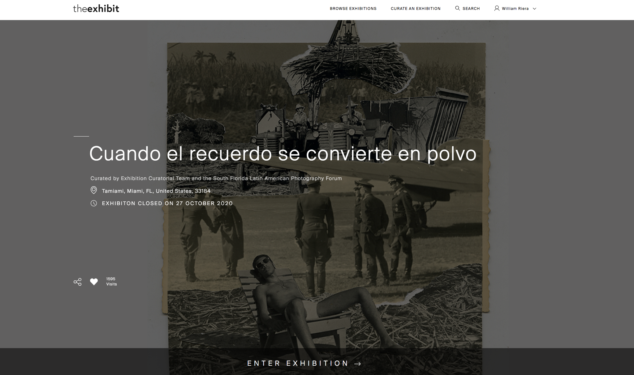 La deuxième exposition virtuelle, (Quand la mémoire se transforme en poussière), de l’artiste visuel cubain Ricardo Miguel Hernández (@ r.miguelon84), a été ouverte au public du 1 août au 30 octobre 2020. (https://theexhibit.io/exhibition/cuando-el-recuerdo-se-convierte-en-polvo). Elle est profondément enracinée dans le travail avec les archives photographiques que l’artiste développe depuis quelques années. Il collectionne de vieilles photographies des années 1920 à 1980, pour construire un nouveau discours esthétique et conceptuel à partir des fragments et des coupures de photos avec lesquelles il travaille. Ses photomontages constituent une polysémie métaphorique où la mémoire sociale de Cuba occupe une place prépondérante