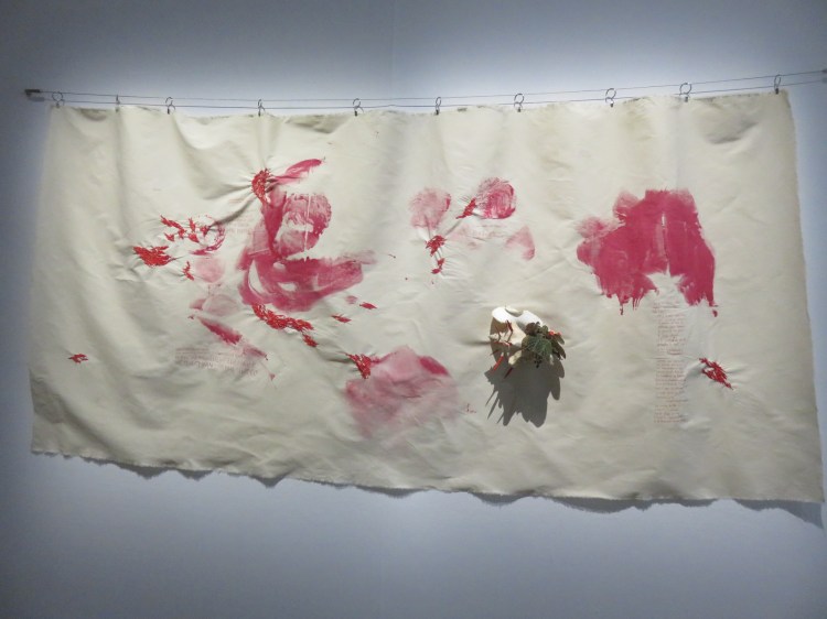 La diversité et l’originalité des créations, inscrites résolument dans la contemporanéité, accrochent l’œil et invitent à suivre les fils rouges qui assurent la cohérence de l’ensemble. Echos thématiques : le corps, le sexe, la maternité, l’intimité exhibée ou à peine dévoilée. Modalités de création : broderie, photographie, graphie et typographie.