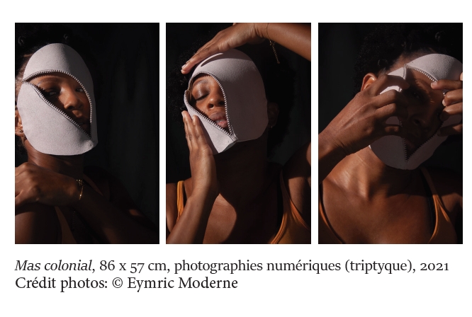 Pour Tracy Théodore, c’est une référence à l’oeuvre de Frantz Fanon, Peau noire, masques blancs et l’expression d’une difficulté à se débarrasser d’un masque imposé par le modèle dominant.