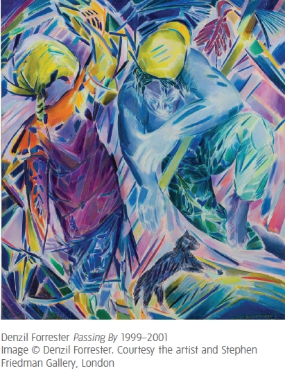 À une extrémité du spectre, l’art britanno-caribéen est abstrait, symbolique et parfois cosmologique; à l’autre, il est socialement réaliste, mais aussi avec beaucoup d’autres propositions hors de ce spectre. Lorsque l’art est engagé dans des changements de la société, il évoque la lutte d’une communauté pour se forger une identité et un moyen de subsistance dans un environnement souvent hostile. D’autres œuvres évoquent des expériences historiques plus profondes, en particulier les images traumatisantes de l’esclavage des plantations et de son héritage dans la culture et la société.