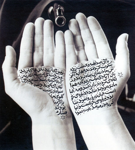Alors que les textes ne sont pas compréhensibles pour le spectateur occidental, ils les considèrent dès lors comme des calligraphies ornementales, mystérieuses. Les images de Neshat ne sont pas montrées en Iran, là justement où le texte pourrait être lu.