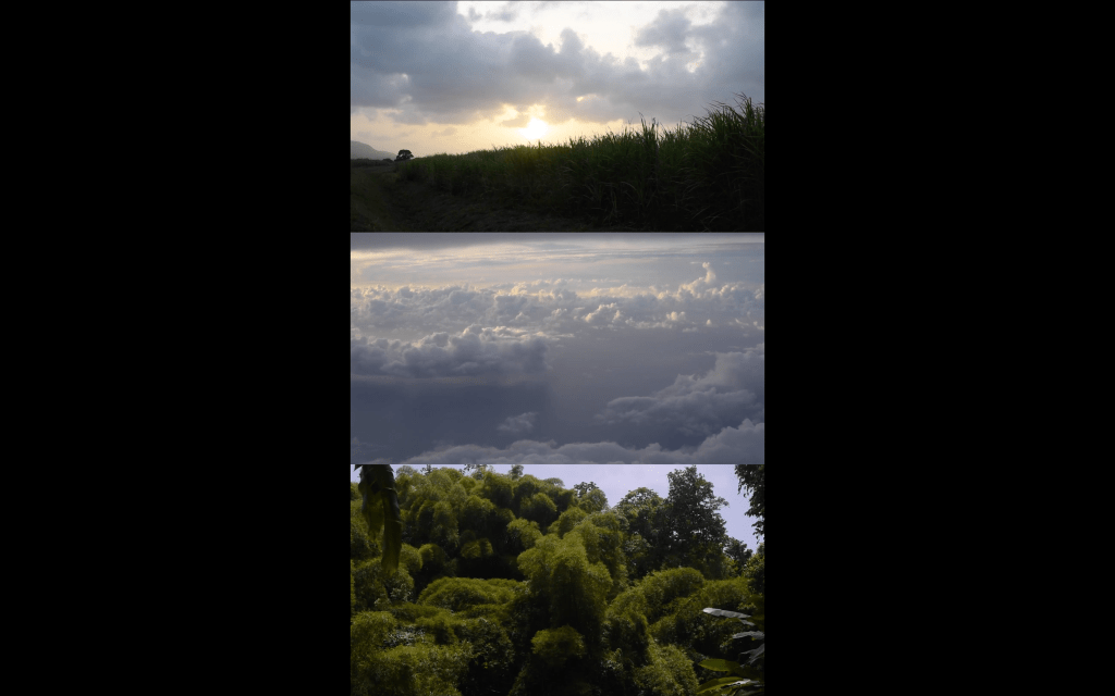 J’ai commencé à accumuler des images en Martinique, à filmer des paysages. Beaucoup d’artistes m’inspirent comme John Akomfrah, Theaster Gates, Arthur Jafa qui captent des plans cinématographiques de paysages et c’est ce que j’avais envie de montrer à Rennes. Je n’avais plus envie de montrer ma peinture, j’avais envie de montrer des images de la Martinique.