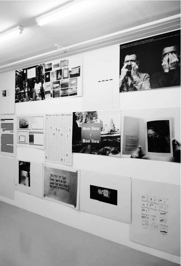 J’ai décidé de choisir comme thème de faire des clins d’œil dans la ville. Accrocher le poster dans un espace urbain choisi, créer un jeu de mots, photographier. Les photographies sont en noir et blanc dans l’ensemble du projet.