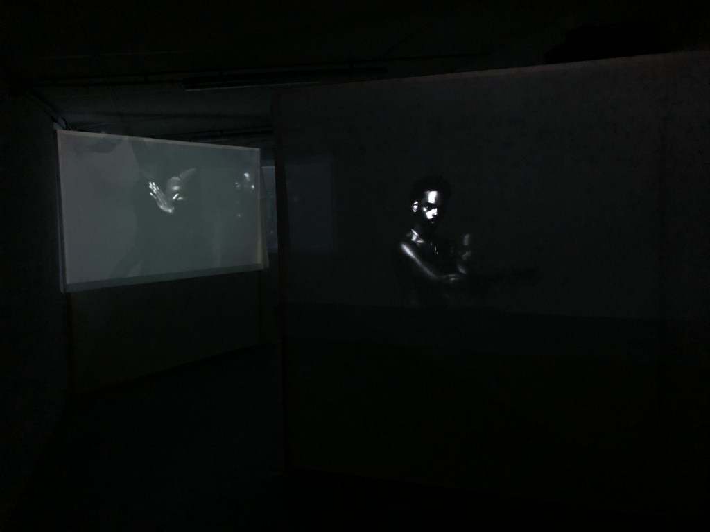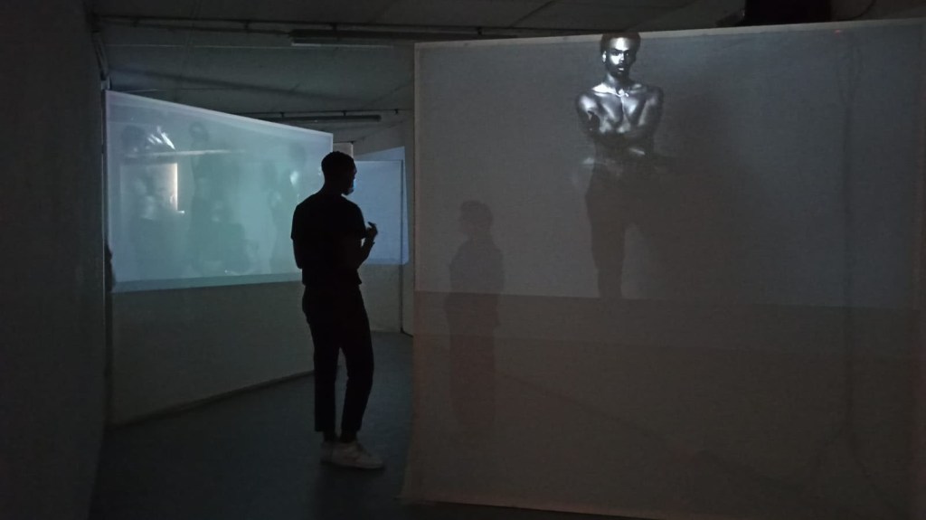 J’ai rajouté un autre élément pour renforcer cette dynamique enveloppante, cette expérience esthétique immersive . J’avais le visuel, j’avais le sonore, et j’ai ajouté l’olfactif. Je sais comment créer un accord, comment travailler les notes et je me suis dit qu’avec des huiles essentielles, je pouvais créer des accords olfactifs. Il me fallait trois odeurs puisque j’avais trois vidéos. En montant mes vidéos, j’ai composé mes parfums. Ce que je raconte, c’est mon voyage entre la Martinique et Paris depuis huit ans, c’est comment je me suis construit d’un point de vue créatif, artistique, comment je me construis d’un point de vue personnel également. En assemblant ces trois petits films qui composent une seule pièce, en créant ces odeurs qui font mon quotidien, qui évoque mes allers-retours, j’ai créé quelque chose qui illustre plus ou moins la construction de ma personnalité. C’est alors que l’idée de devenir, trouver sa maison, construire sa maison et devenir soi-même sa maison, son refuge, c’est comme ça que ce titre Becoming home est arrivé.