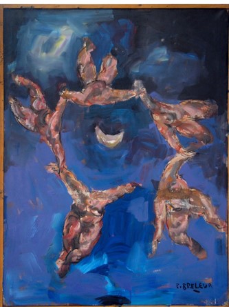La Maëlle Galerie qui s’est consacrée depuis dix ans à défendre le travail sculptural et les dessins d’Ernest Breleur, présente pour la première fois des œuvres picturales de l’artiste avec la série Mythologie de la lune, initialement conçue et réalisée en 1989. Des croquis préparatoires d’époque, retrouvés et jamais exécutés, ont inspiré cette nouvelle série inédite réalisée trente- trois ans plus tard.