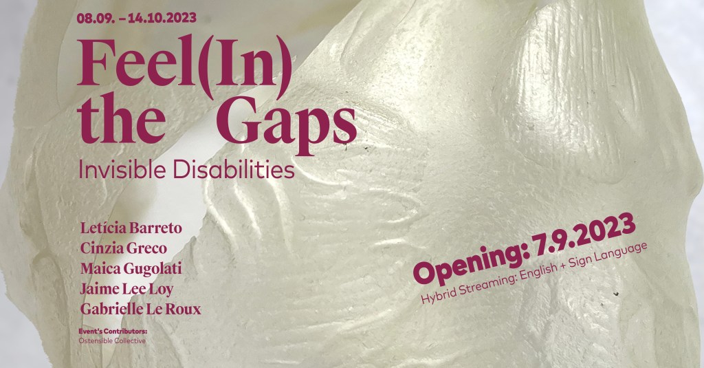 Feel(In) the Gaps starts from an ongoing discussion among the five of us: artists, activists, researchers, and curators who shared the experience of having different invisible and visible disabilities. After meeting regularly online since the pandemic, creating a space where we learned about one another’s (in)visibilities, this art show allows us to take “body and space” of these discussions while opening the dialogue with different audiences and colleagues. This art exhibition does not treat disabilities as an “object” of discussion but is created through the experience of the disabilities themselves.