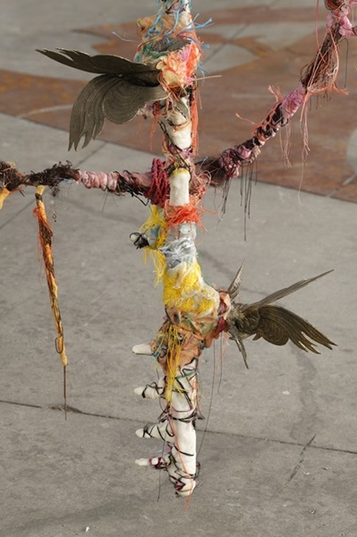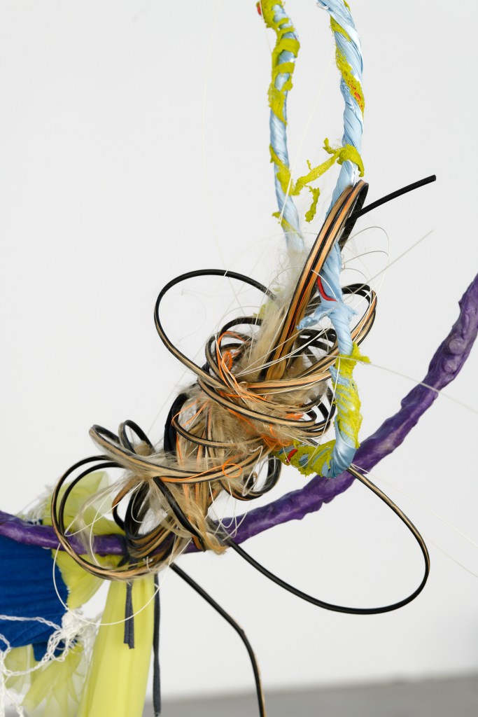 Les formes créées par Julien Creuzet s’émancipent des formes standardisées, des catégories préétablies ou préexistantes. Composites, tridimensionnelles, hybrides, précairement équilibrées, mystérieuses, elles naissent de la collecte et du recyclage de matériaux naturels ou manufacturés